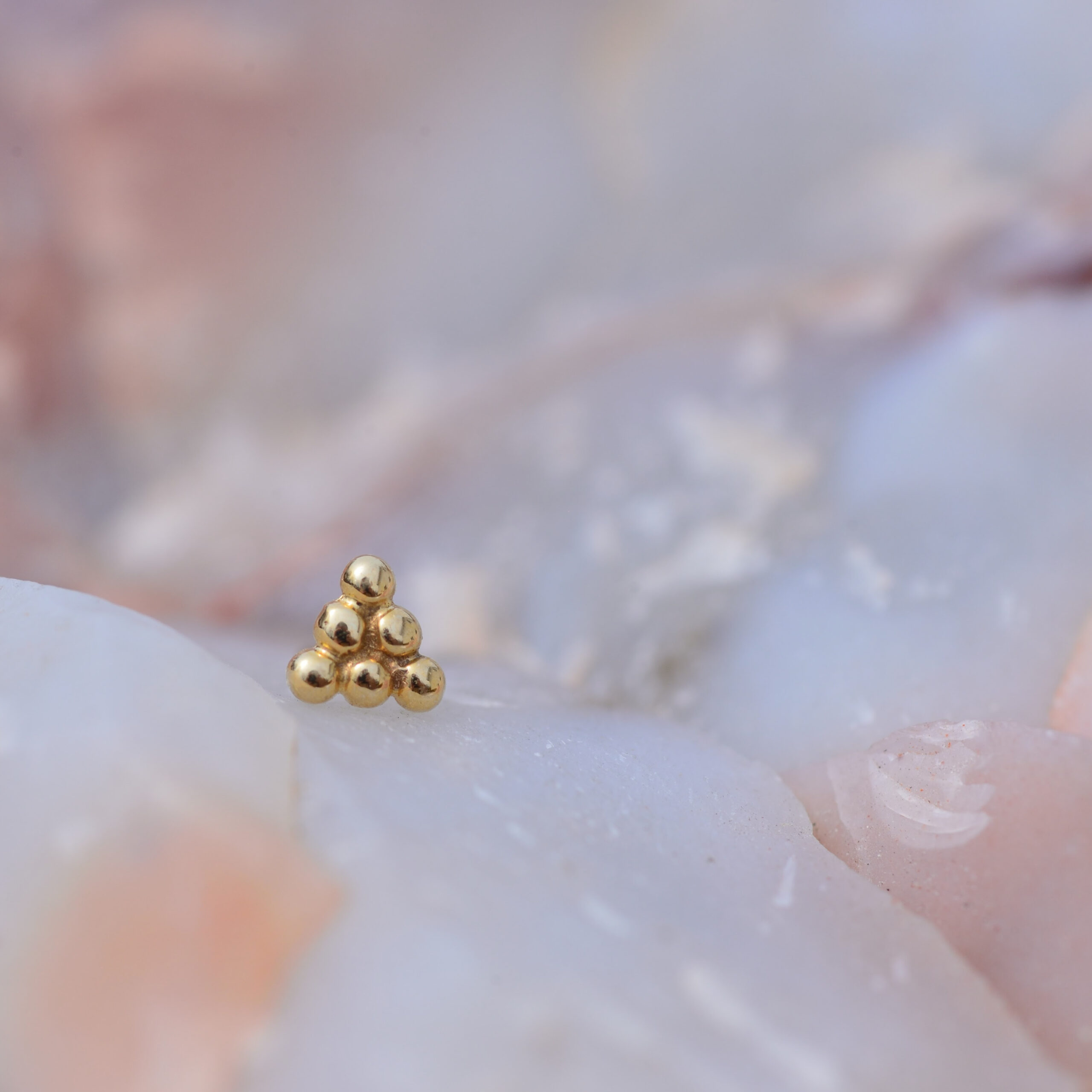 BVLA’s 6 beaded triangle 3mm cluster of tiny beads in 14k Yellow, Rose or White
