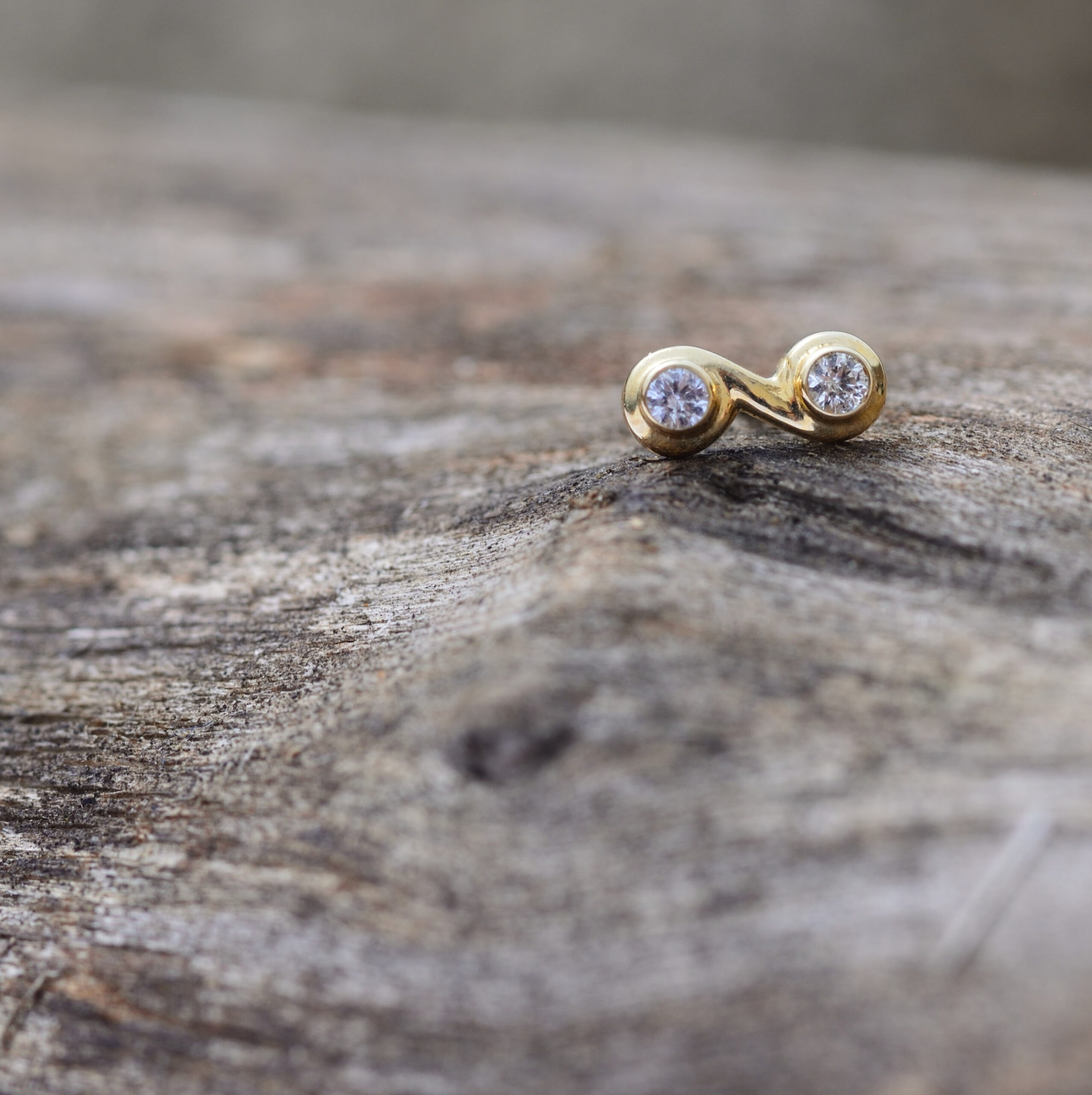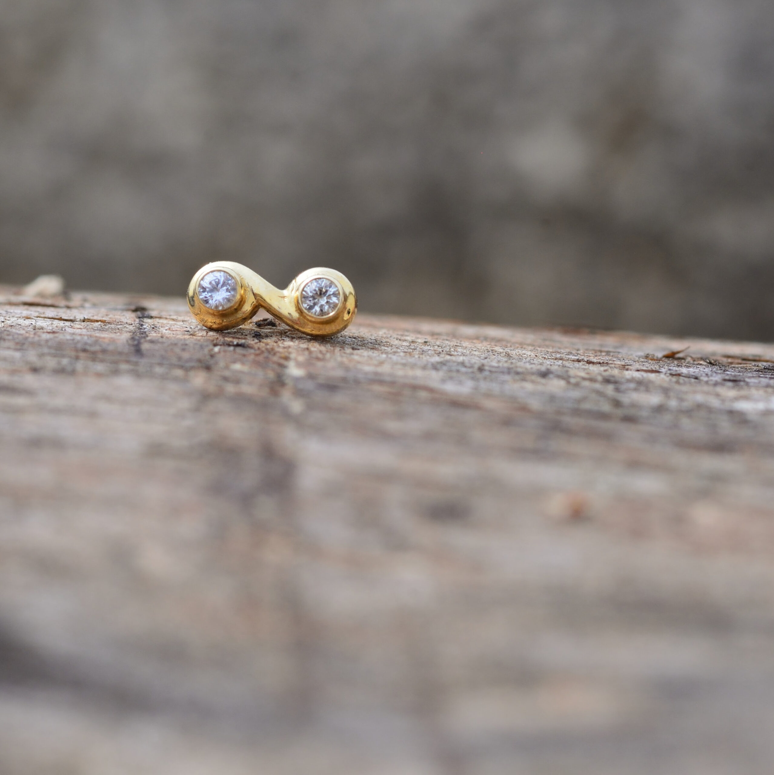 Body Vision’s double Swirl with 1.5 Genuine AA White Sapphire. This Threadless piece is available in solid 14k Yellow Gold.