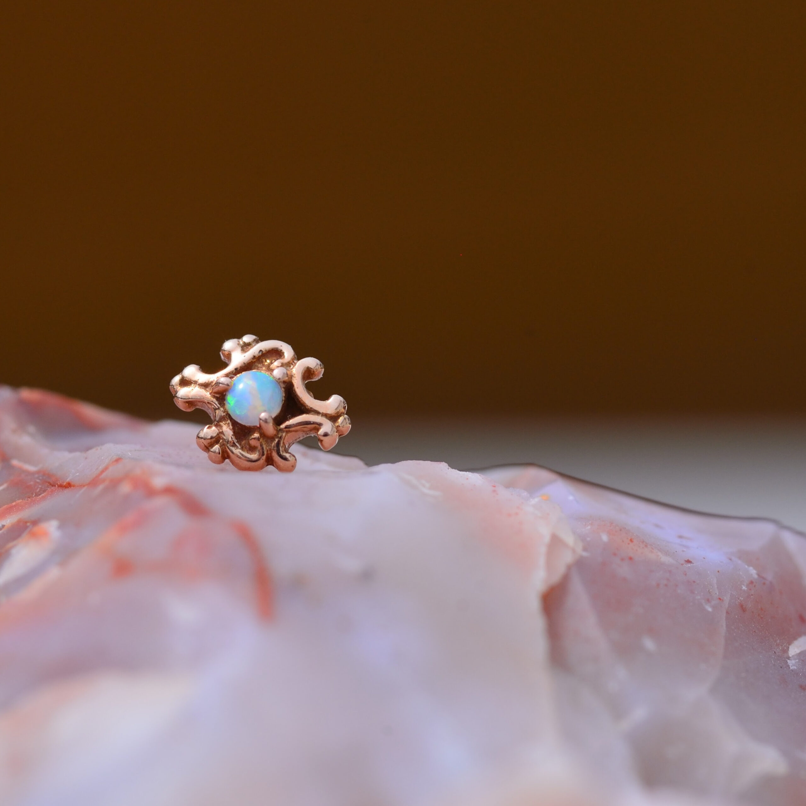 BVLA Paloma Swirl 6mm Threadless end: Solid 14k Rose gold with White Opal 2mm