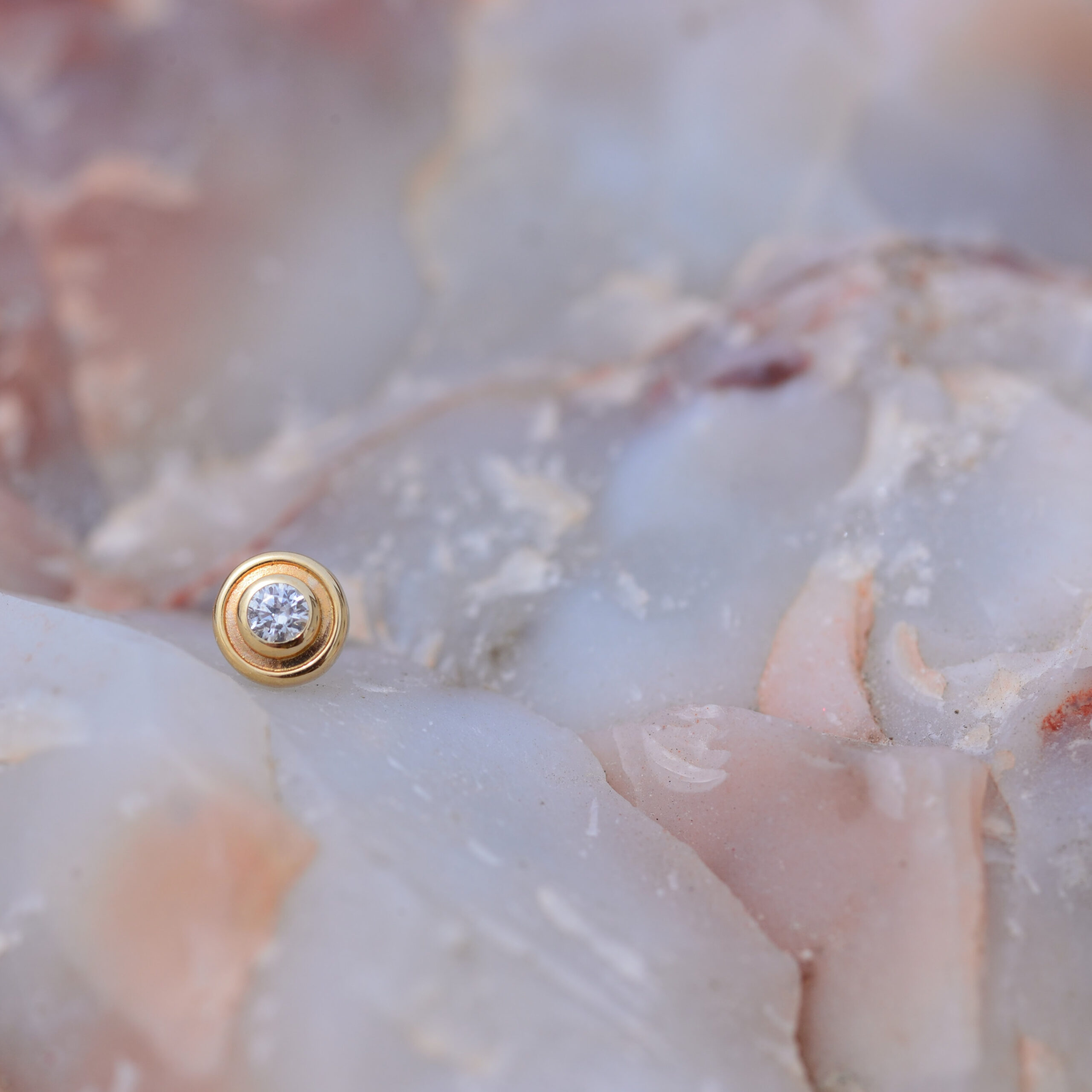 Solid Yellow gold 14k Threadless end with Cubic Zirconia