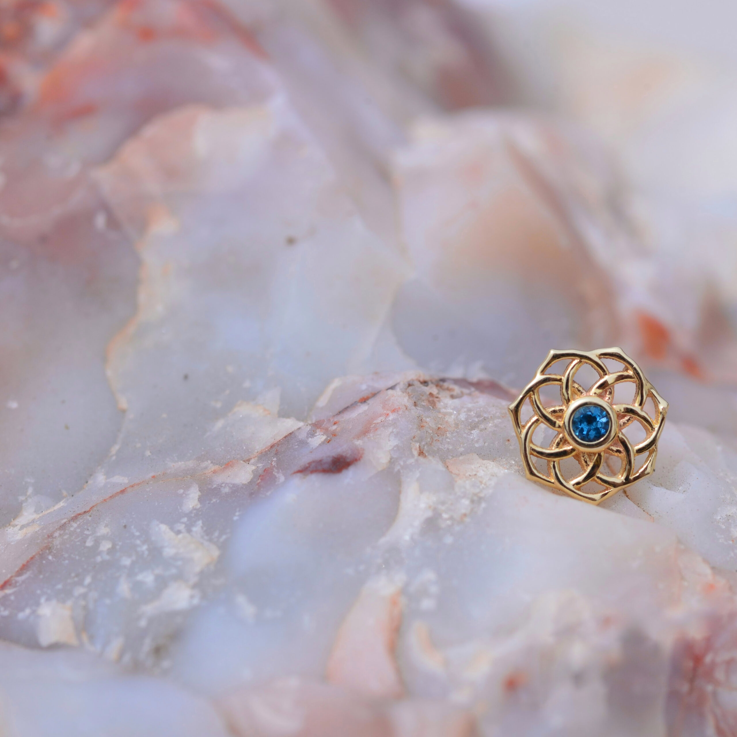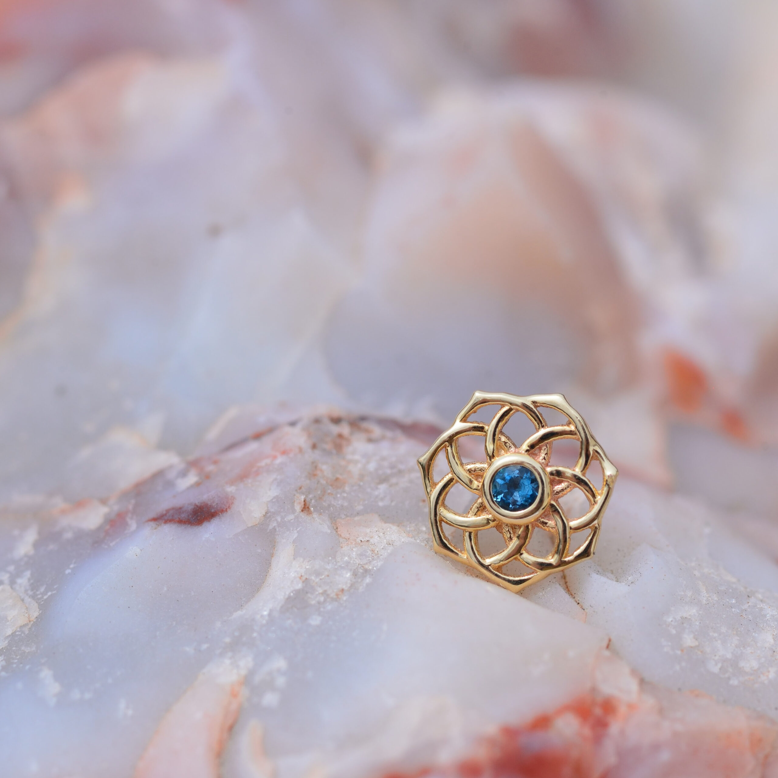 Shandra solid Yellow Gold 14k London Blue Topaz Threadless